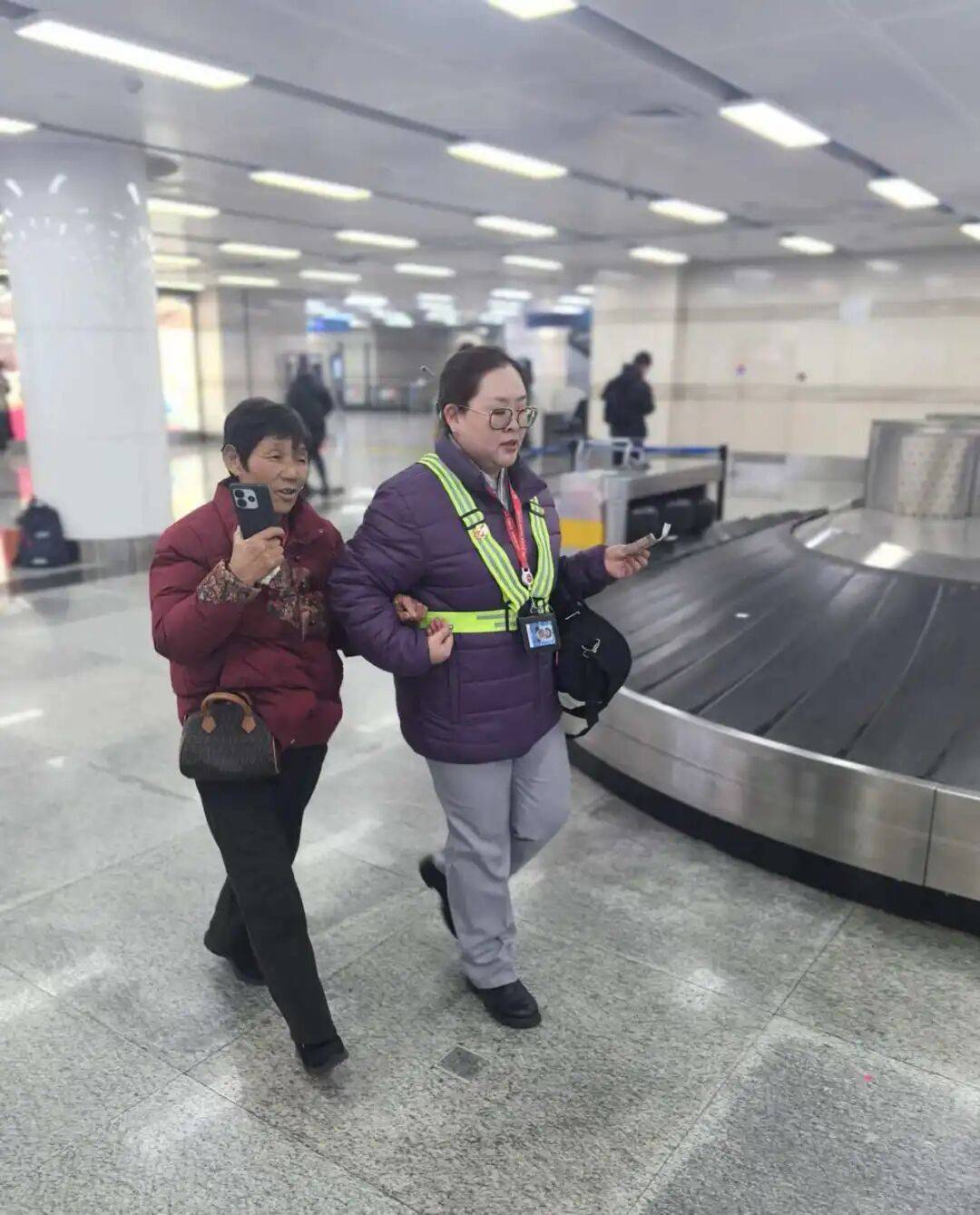 机场工作人员照顾老人(来源:受访者提供)